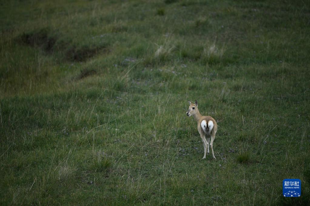 9月15日,一只普氏原羚在青海湖岸邊的牧場(chǎng)內(nèi)活動(dòng)。新華社記者 張龍 攝