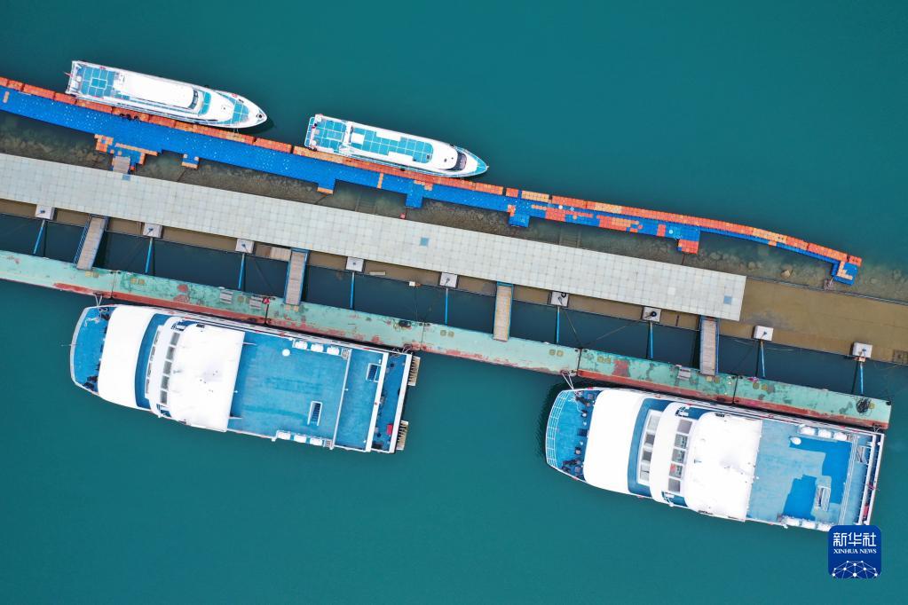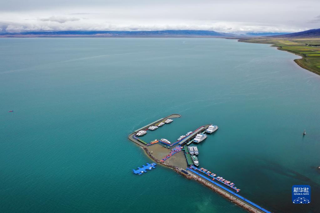 這是9月15日拍攝的青海湖上停泊的船只(無(wú)人機(jī)照片)。新華社記者 邢廣利 攝