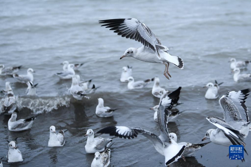 這是9月15日在青海湖邊拍攝的棕頭鷗。新華社記者 張龍 攝