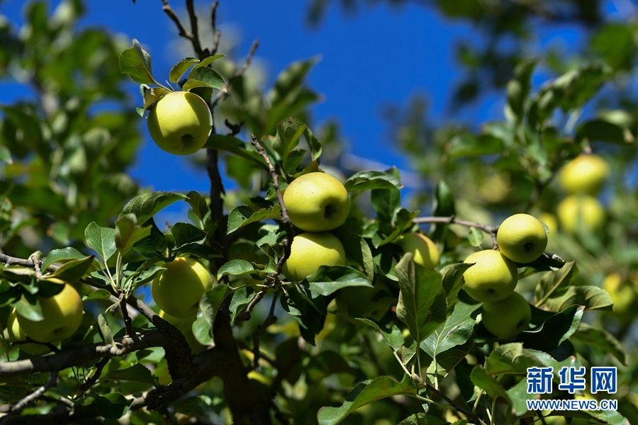 楊林春的農(nóng)家院里,即將成熟的蘋果。新華網(wǎng) 潘彬彬 攝