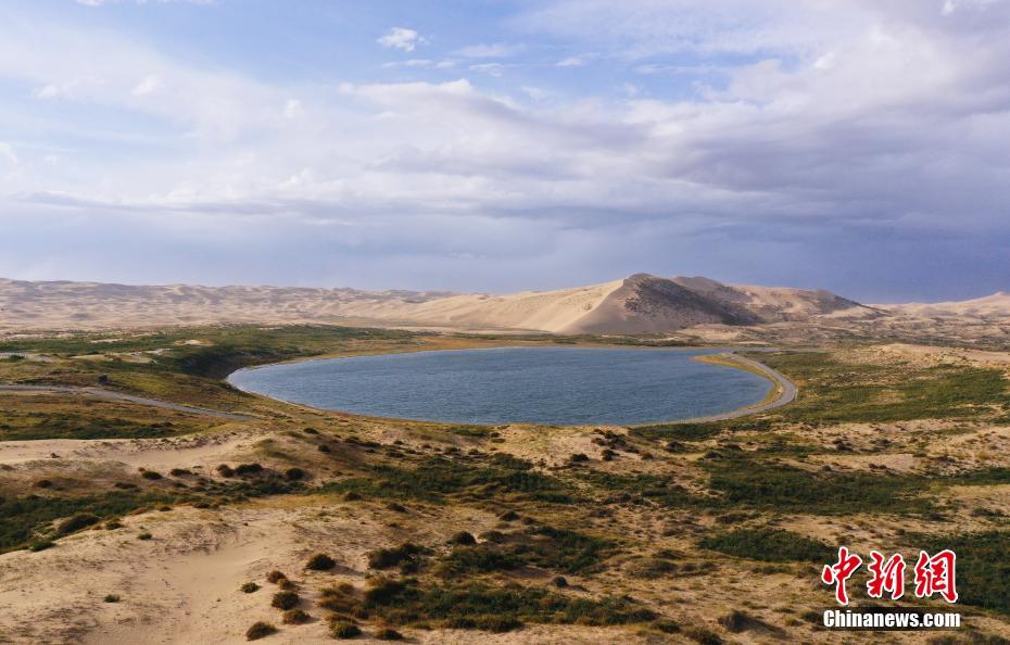 9月27日,航拍青海省海北藏族自治州海晏縣關(guān)停的青海湖沙島景區(qū)內(nèi)的太陽(yáng)湖。(無(wú)人機(jī)照片) 中新社記者 馬銘言 攝