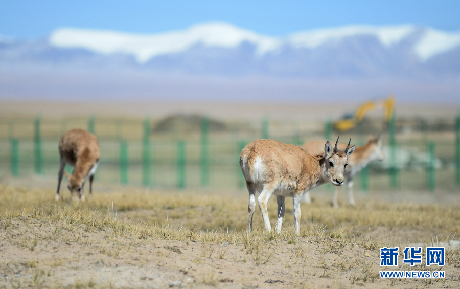 在可可西里國家級(jí)自然保護(hù)區(qū)索南達(dá)杰保護(hù)站,幾只藏羚羊在野生動(dòng)物救助中心活動(dòng)(9月28日攝)。新華社記者 嚴(yán)賦憬 攝