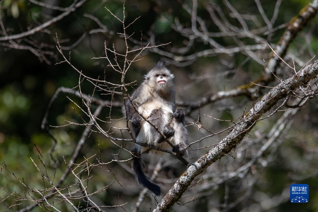 云南迪慶藏族自治州香格里拉滇金絲猴國(guó)家公園里的滇金絲猴(3月16日攝)。新華社記者 胡超 攝