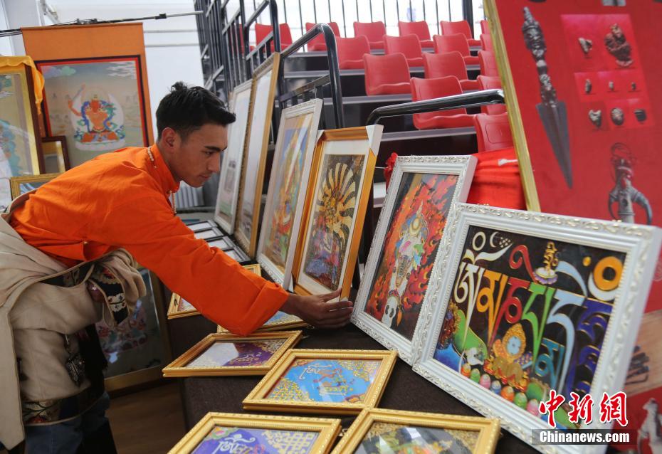圖為畫師展示唐卡。張?zhí)砀?攝