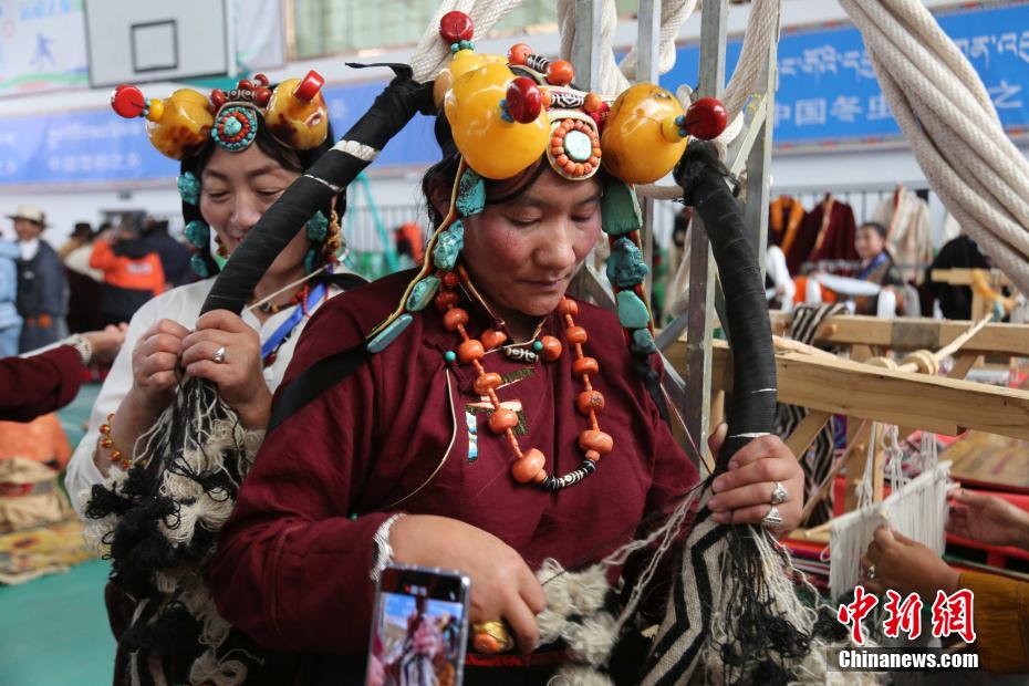 圖為婦女展示編織技藝。張?zhí)砀?攝