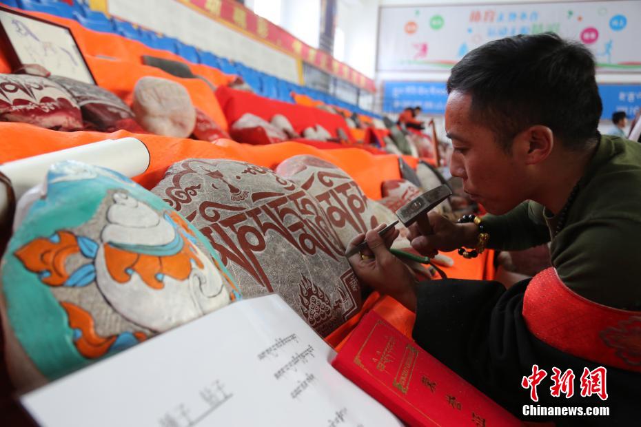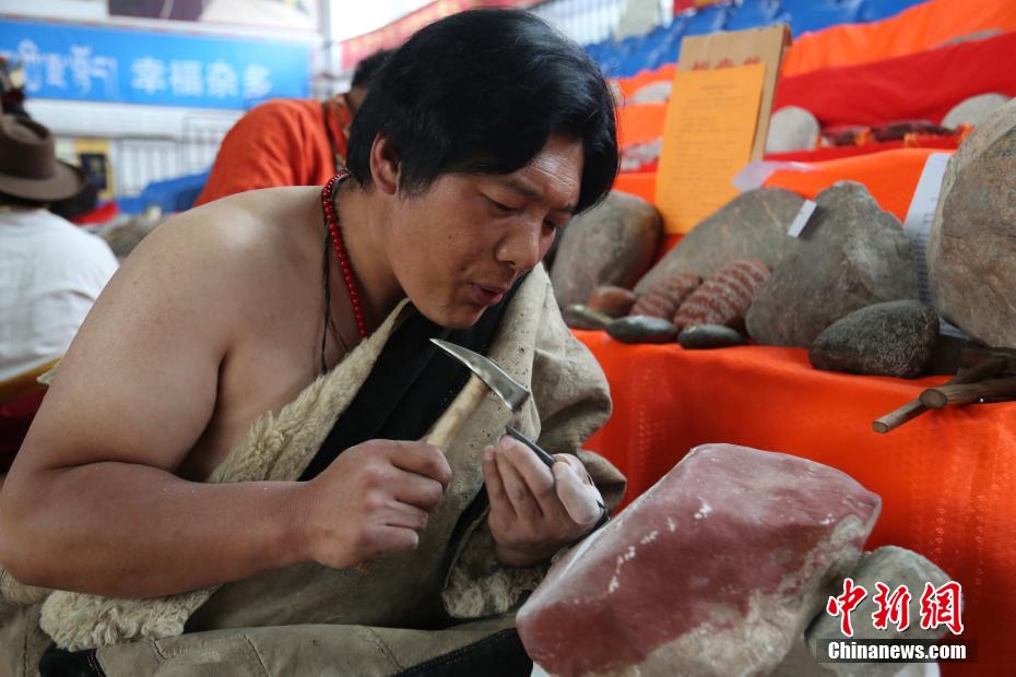 圖為藏族漢子雕刻。張?zhí)砀?攝