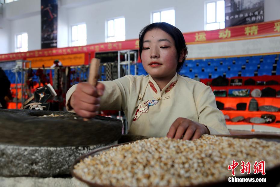 圖為磨青稞。張?zhí)砀?攝