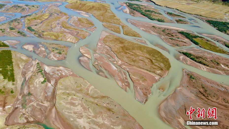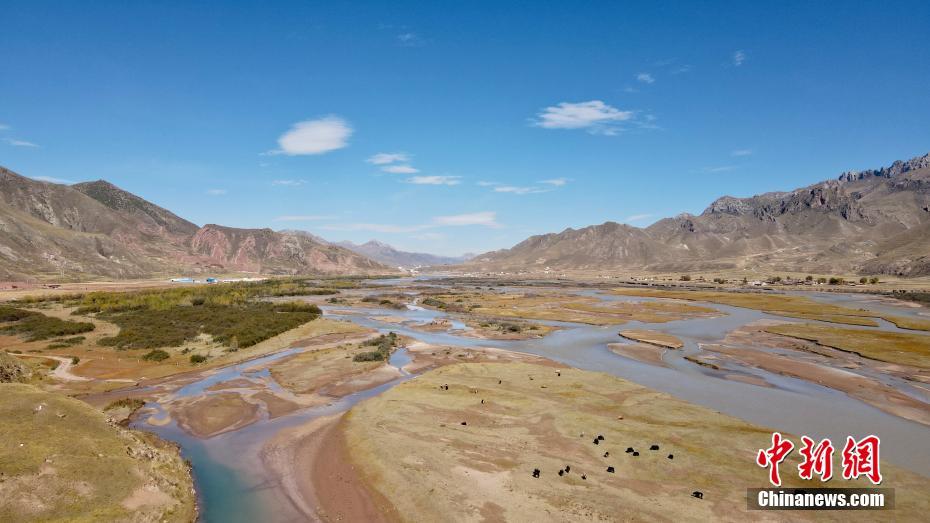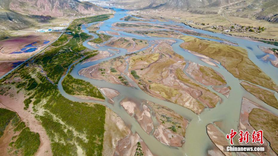 10月18日,航拍秋日的青海玉樹藏族自治州囊謙縣瀾滄江網(wǎng)狀水系,縱橫交錯的水系,與周圍秋季泛黃的草原相襯,勾勒出了一幅絢麗畫卷。中新社記者 李江寧 攝