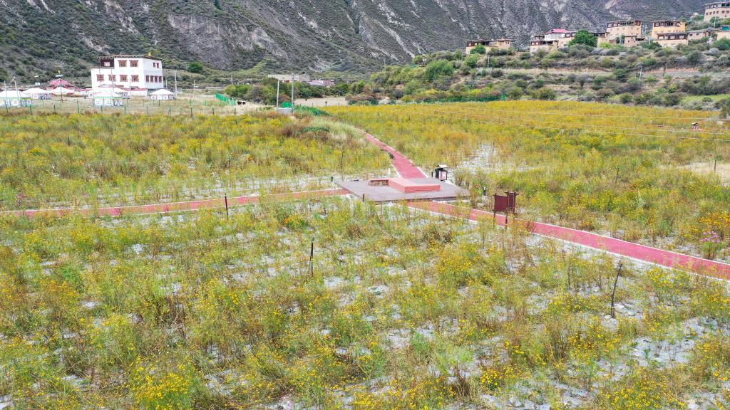 記者眼前的藥材基地,位于新龍縣博美鄉(xiāng)仁乃村。當(dāng)?shù)厝罕姼嬖V記者,這片基地以前是個亂石灘。