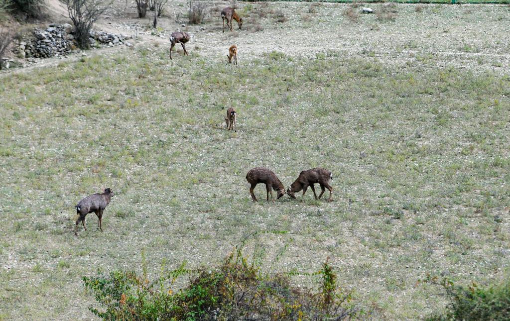 10月20日在仁乃農(nóng)旅融合示范園拍攝的當(dāng)?shù)仞B(yǎng)殖的梅花鹿。新華社記者 王曦 攝