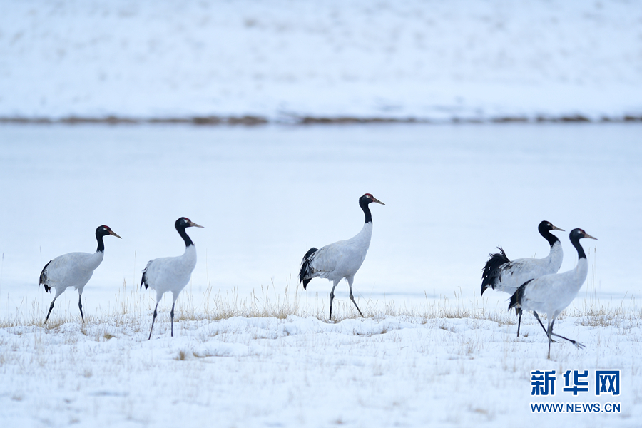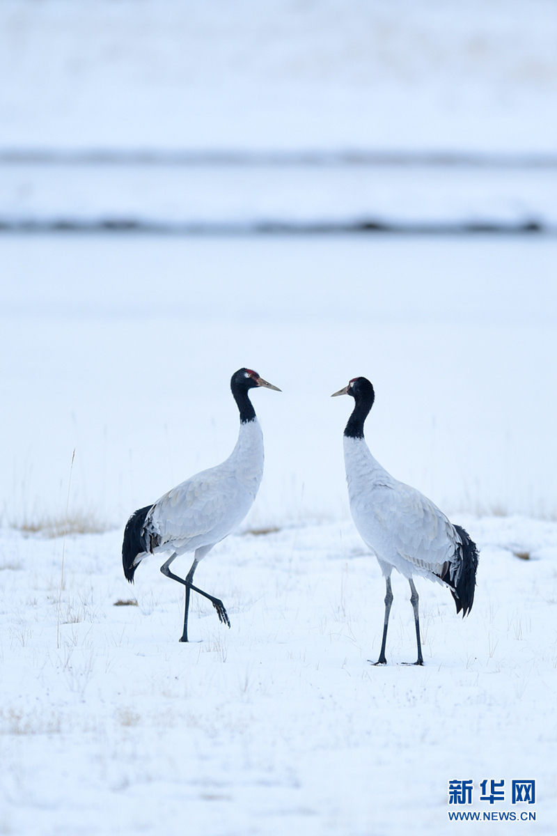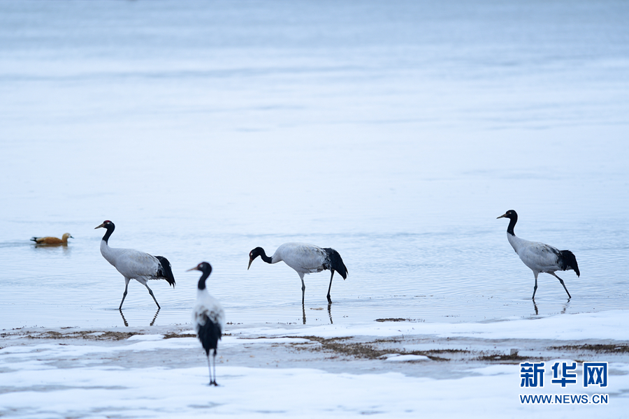 10月21日在三江源國(guó)家公園黃河源園區(qū)內(nèi)拍攝的黑頸鶴。新華社記者 張龍 攝