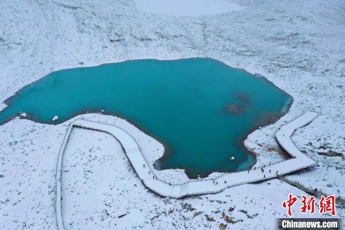 航拍達(dá)古冰川美麗的淚湖。肖蓉 攝
