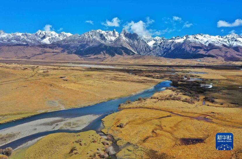 這是10月24日在措普溝景區(qū)內(nèi)拍攝的章德草原和扎金甲博神山。新華社記者 劉坤 攝