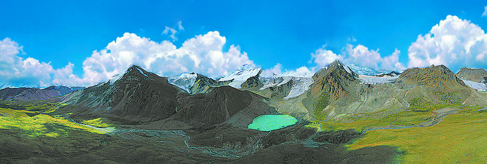 遠眺索布查葉,山脈頂部云霧環(huán)繞,山坡上青翠欲滴,山腳下無數(shù)銀鏈般的細流在廣袤的草地上開枝散葉。