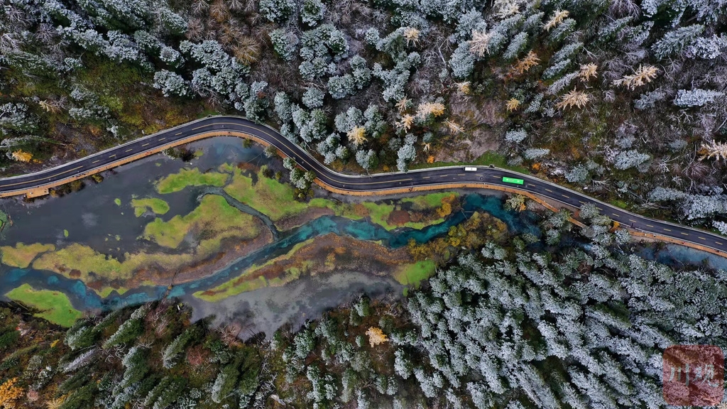 交替時(shí)節(jié),四川各地眼下已融合成了多姿多彩的天然調(diào)色盤,或是彩林錯(cuò)落,或是銀裝素裹,彩林與白雪相遇相擁,半山彩林半山雪的景致讓人無(wú)限向往。