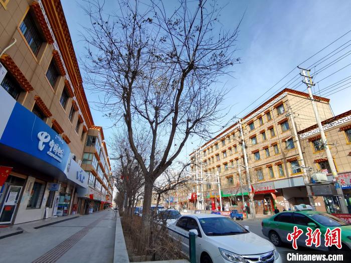 圖為青海省黃南藏族自治州尖扎縣街道外立面改造后的效果。張?zhí)砀!z