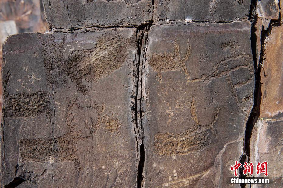 圖為此次發(fā)現(xiàn)的古巖畫(huà)遺存。(12月17日拍攝) 中新社發(fā) 江巴然丁攝