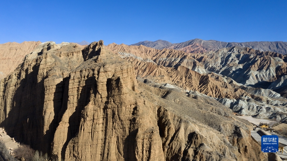 這是12月24日在貴德縣拍攝的丹霞地貌(無人機照片)。新華社記者 陳杰 攝