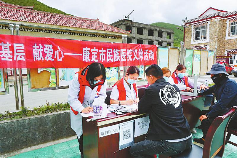 都江堰市第六批對(duì)口支援工作隊(duì)隊(duì)員、掛職康定市民族醫(yī)院副院長(zhǎng)的田梅等醫(yī)生在新都橋鎮(zhèn)開(kāi)展義診活動(dòng)。