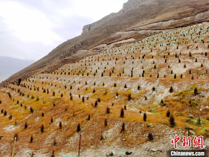 “這個(gè)礦山勢(shì)險(xiǎn)峻,交通極其不便,強(qiáng)行擴(kuò)路運(yùn)送機(jī)械上山,肯定會(huì)造成生態(tài)環(huán)境的二次破壞,只能依靠肩挑手扛把羊板糞、草籽等運(yùn)到山頂?!逼钸B縣林草局原局長(zhǎng)馬有明介紹,西山梁礦區(qū)海拔3460米,原始生態(tài)非常脆弱,氣候非常惡劣,每年零度以下的天氣就有183天,復(fù)綠難度非常大。