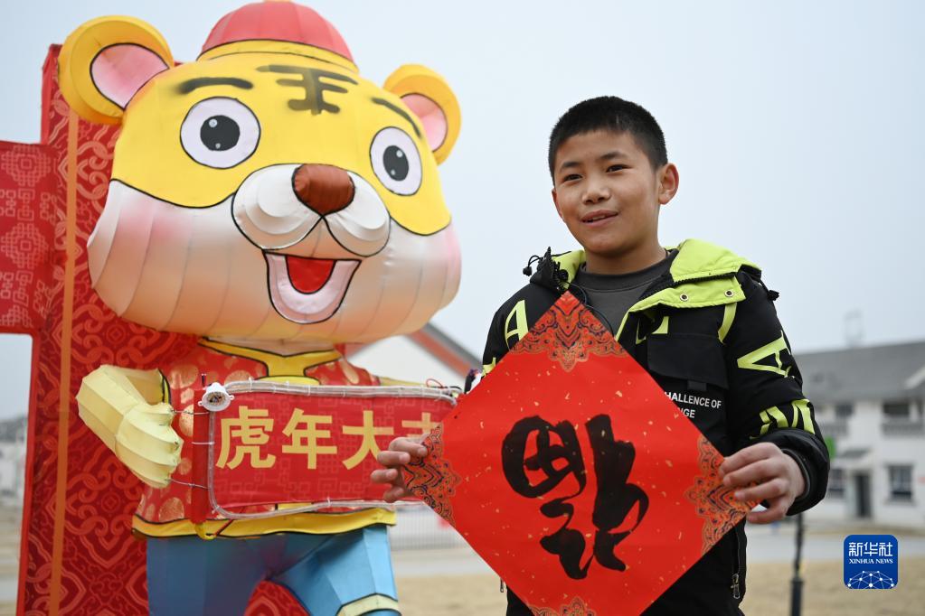 1月25日,在蘭州新區(qū)舟曲避險搬遷安置點,搬遷群眾展示領取的福字。新華社記者 范培珅 攝