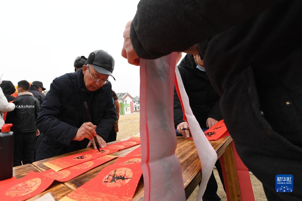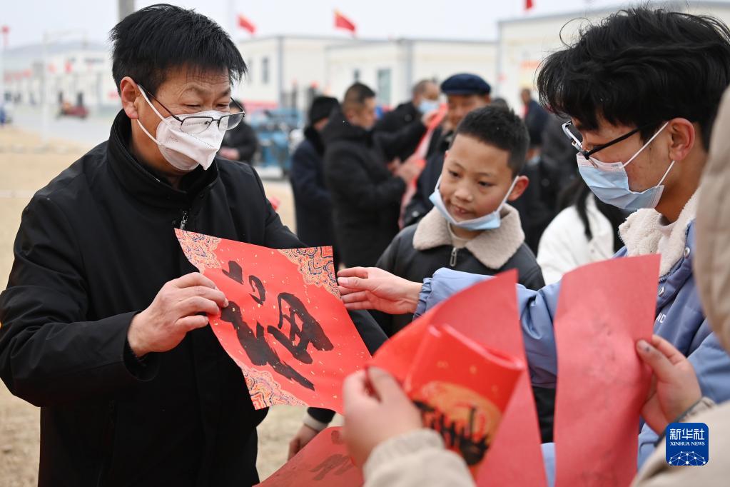 1月25日,在蘭州新區(qū)舟曲避險搬遷安置點,舟曲地質(zhì)災害避險搬遷第一臨時黨支部組織書法家給搬遷群眾送春聯(lián)。新華社記者 范培珅 攝