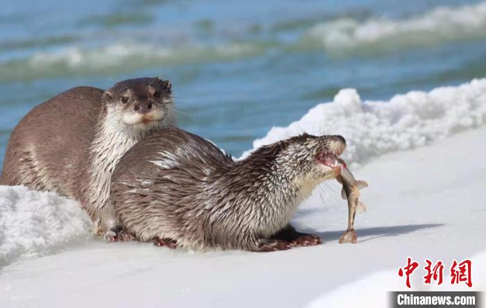 圖為鳥(niǎo)類(lèi)調(diào)查期間,偶遇水獺母子在河邊捕魚(yú)。青海多美生態(tài)環(huán)??萍加邢薰?供圖