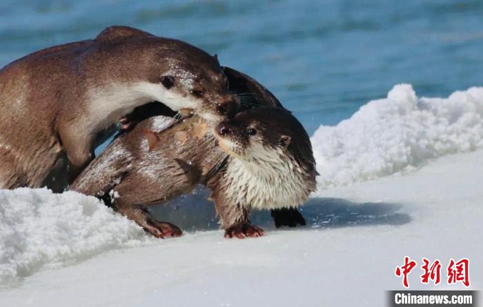 圖為水獺一家在河邊曬太陽(yáng)。青海多美生態(tài)環(huán)保科技有限公司 供圖