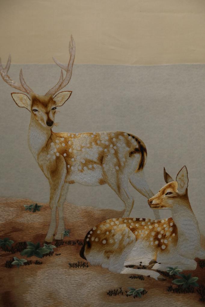 “你看這兩幅都是貴南藏繡,一幅生硬、粗獷,另一幅靈動(dòng)、細(xì)膩,就是要通過(guò)學(xué)習(xí)其他繡法,不斷摸索創(chuàng)新,讓藏繡越來(lái)越精美?!崩~忠拿著這兩幅藏羚羊作品解釋。作為省級(jí)非物質(zhì)文化遺產(chǎn)項(xiàng)目代表性傳承人,拉毛葉忠一直在思考,如何讓傳統(tǒng)藏繡煥發(fā)新活力。