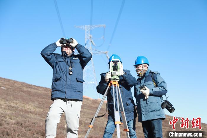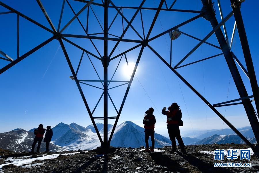 圖為國網(wǎng)青海檢修公司輸電運檢人員李承鴻、楊濤、梁威對750千伏拉寧線開展春節(jié)前特巡。朱毅然 攝
