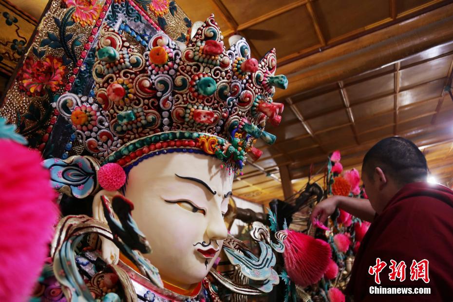 圖為塔爾寺藝僧為酥油花主佛做修飾。馬銘言 攝