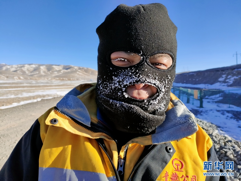 一天的工作結(jié)束后,她們的帽子、脖套上已布滿厚厚的冰霜。圖為中國鐵路青藏集團(tuán)公司格爾木工務(wù)段職工才仁文毛。