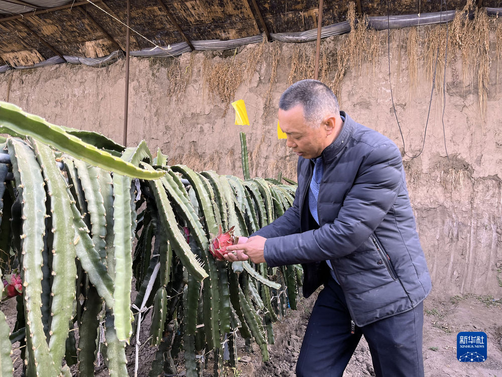 2月24日,郭存海在大棚查看火龍果生長情況。新華社記者 解統(tǒng)強(qiáng) 攝