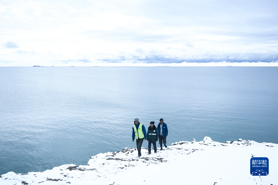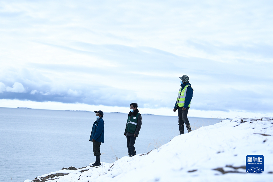 2021年10月20日,在青海省果洛藏族自治州瑪多縣扎陵湖鄉(xiāng)勒那村,三江源國(guó)家公園黃河源園區(qū)生態(tài)管護(hù)員在扎陵湖畔巡護(hù)。新華社記者 李占軼 攝