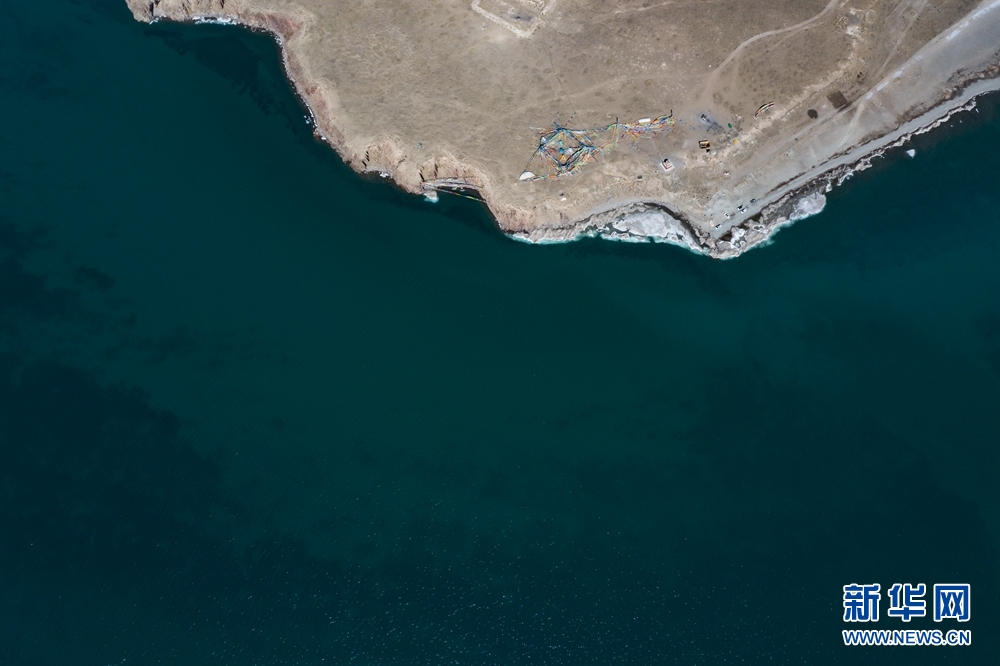 青海湖一角(無人機照片)。新華網 宋忠勇 攝
