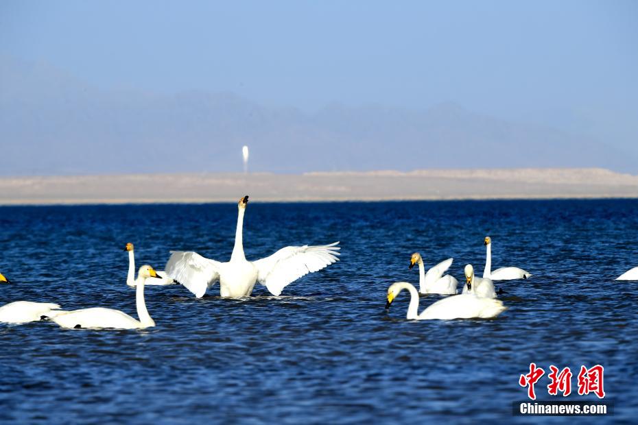 上百只天鵝在柴達(dá)木盆地可魯克湖翩翩起舞