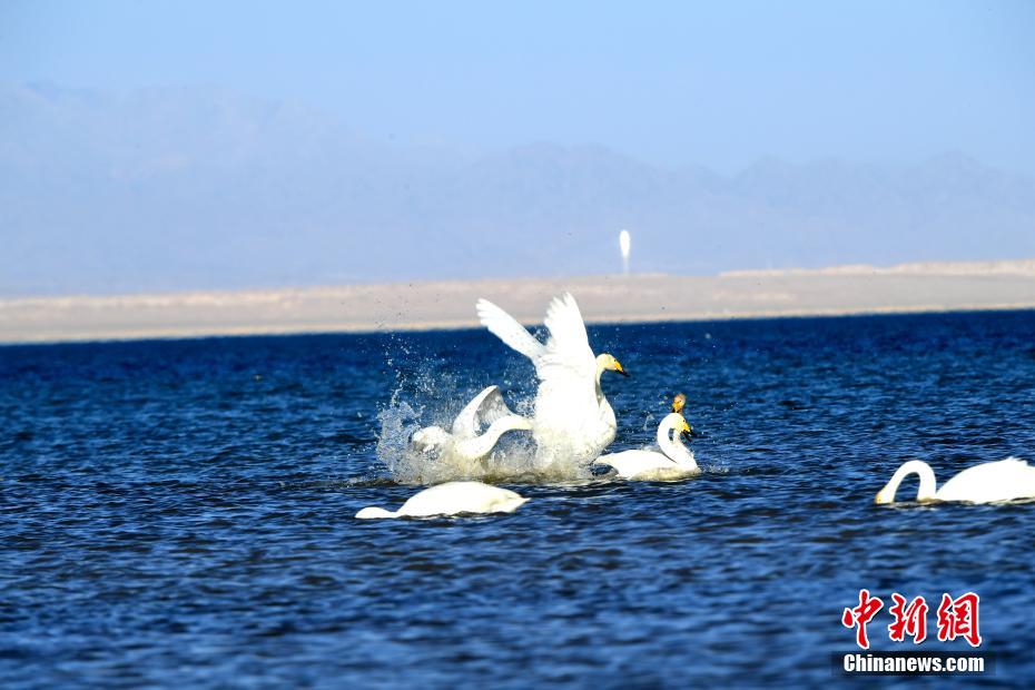 青海湖畔大天鵝集體“泡湯”畫(huà)面唯美