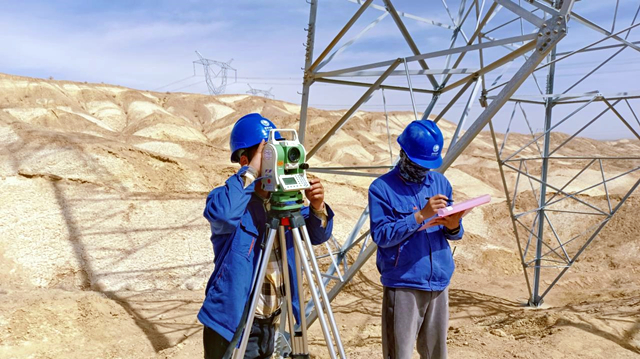 輸電運(yùn)維人員開展新建桿塔傾斜測量工作。才項東只 攝