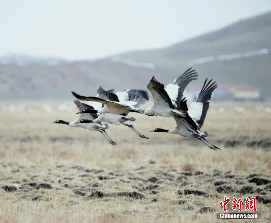 近日,百余只黑頸鶴集群在四川省阿壩藏族羌族自治州若爾蓋國家級自然保護區(qū)熱曲河畔追逐、休憩,它們將在這里慢慢建立各自的領(lǐng)域并進入繁殖期。春季,是各種越冬鳥兒返回繁殖地的季節(jié)。在四川若爾蓋國家級自然保護區(qū)內(nèi),2000余只黑頸鶴,由以前的候鳥變成了留鳥,在當?shù)囟ň拥?1月后離開,目前已進入繁殖期。