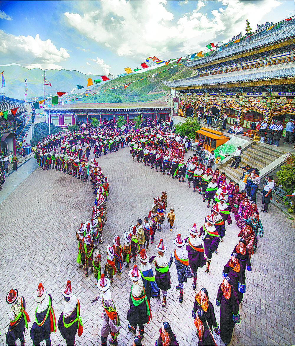 熱貢傳統(tǒng)六月會(huì)以其獨(dú)特的民俗表演,每年吸引眾多省內(nèi)外攝影愛(ài)好者爭(zhēng)相走進(jìn)熱貢取材,圖為熱貢四合吉村落的六月會(huì)盛況。 (本版圖片均為通訊員張海麟攝)