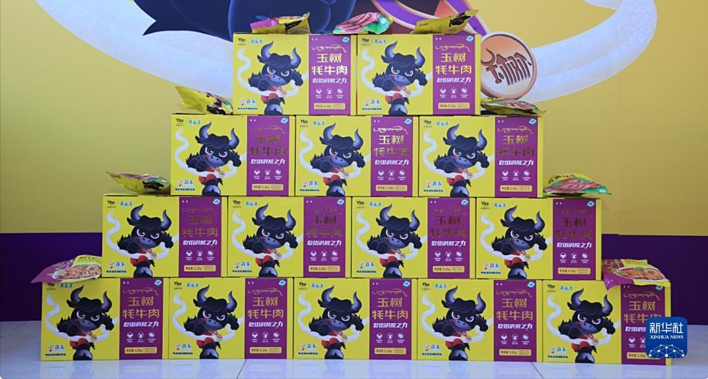 產(chǎn)自海拔4000多米的玉樹牦牛,由北京老字號(hào)月盛齋制成五香牦牛肉、紅燒牦牛腱、香辣牦牛雜等食品,令人眼前一亮。