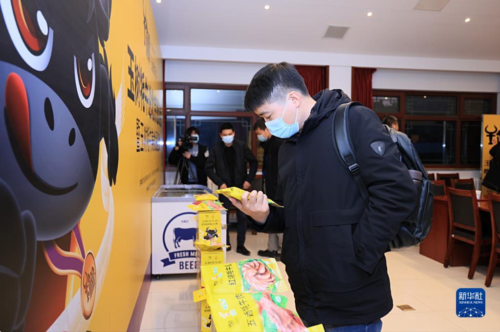 2月23日,“玉樹牦牛進(jìn)北京”懇談會(huì)暨玉樹牦牛美食品鑒會(huì)在北京舉行,消費(fèi)者在挑選月盛齋制作的玉樹牦牛肉醬鹵產(chǎn)品。新華社發(fā)