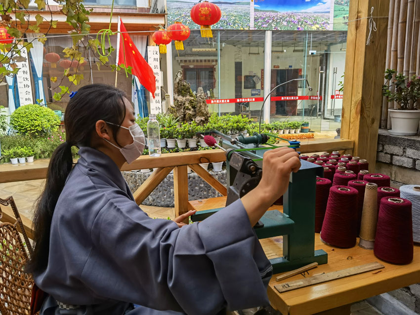 2022年5月12日,“5·12”汶川特大地震抗震救災14周年紀念日,山鷹帶著幾個員工來到漁子溪,在汶川縣黨委、映秀鎮(zhèn)黨委、漁子溪村兩委及當?shù)厝罕姷臒崆閹椭?,舉辦了“藍措馬”品牌圍巾展示活動。村里還積極幫助他們尋找合適的房屋作為編織車間,讓他們先在漁子溪站住腳。
