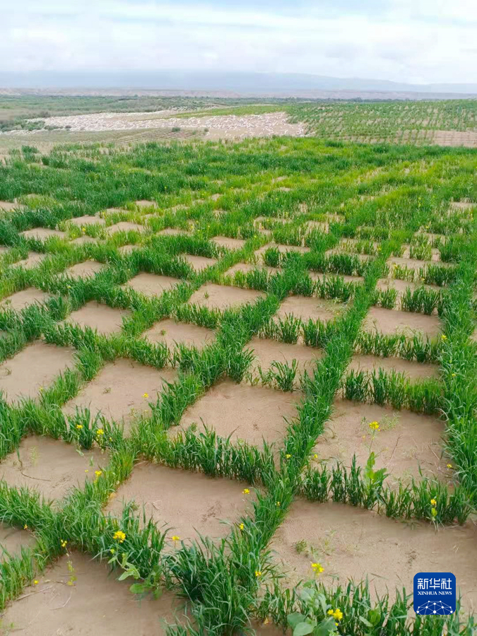 “2018年以來,我們積極開展治沙新材料試驗研究,利用小麥、青稞、燕麥、披堿草等生物材料開展活沙障設(shè)置試驗?,F(xiàn)在四種生物沙障當(dāng)年成活率可達到95%,起到良好的固沙作用?!壁w雪彬說。