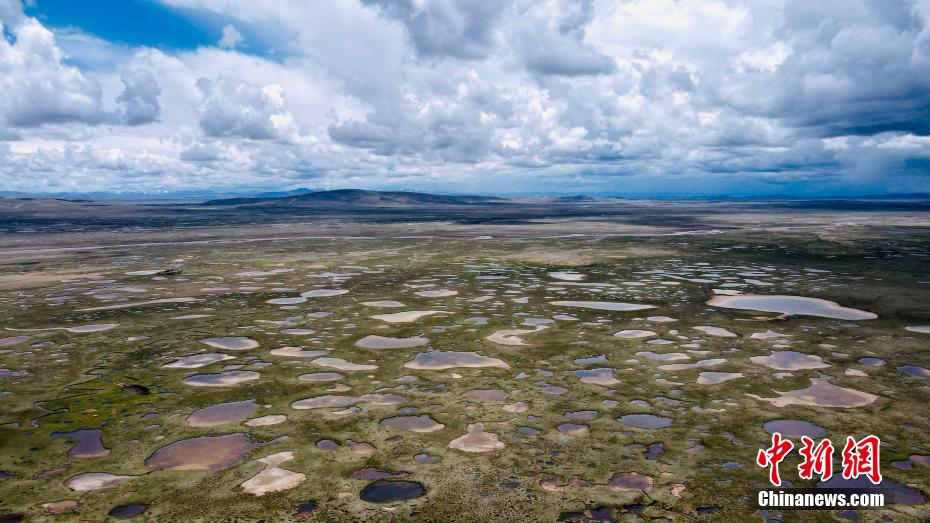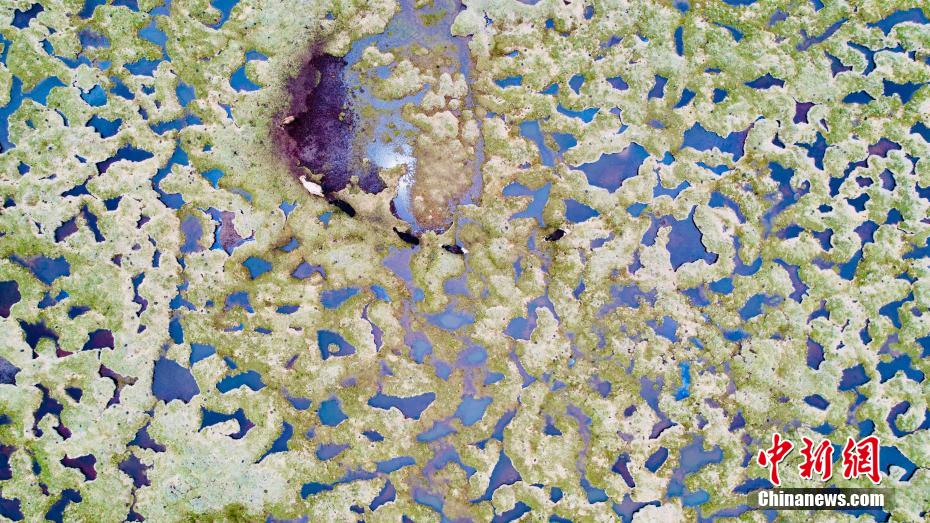 6月18日,航拍長江源區(qū)最大泥碳濕地——查旦濕地。查旦濕地地處青海省玉樹州雜多縣境內(nèi),唐古拉山北麓與瀾滄江西源扎曲形成的一個夾角。由于受南亞季風的影響,每年5月至9月之間形成豐沛的降水,從而濕地廣布,河流縱橫,被稱之為“青藏水鄉(xiāng)”,長江南源當曲(意為沼澤河)發(fā)源于此。 李江寧 攝