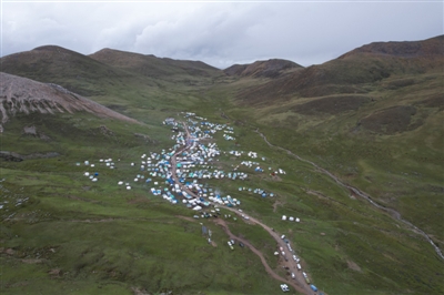 對(duì)理塘人來(lái)說(shuō),蟲(chóng)草一直是大部分農(nóng)牧民的主要收入。雖然今年采集蟲(chóng)草的人不及往年,但阿加溝依然涌進(jìn)了上萬(wàn)人。6月8日下午,部分采集者已經(jīng)下山,營(yíng)地里尚有數(shù)百個(gè)帳篷錯(cuò)落有致地搭建在道路兩邊的草地上,人們都去了山上,整個(gè)山谷一片沉靜。只有傍晚六七點(diǎn)的時(shí)候,人們才像雪水一樣從山上匯聚下來(lái),這里才變得熱氣騰騰。