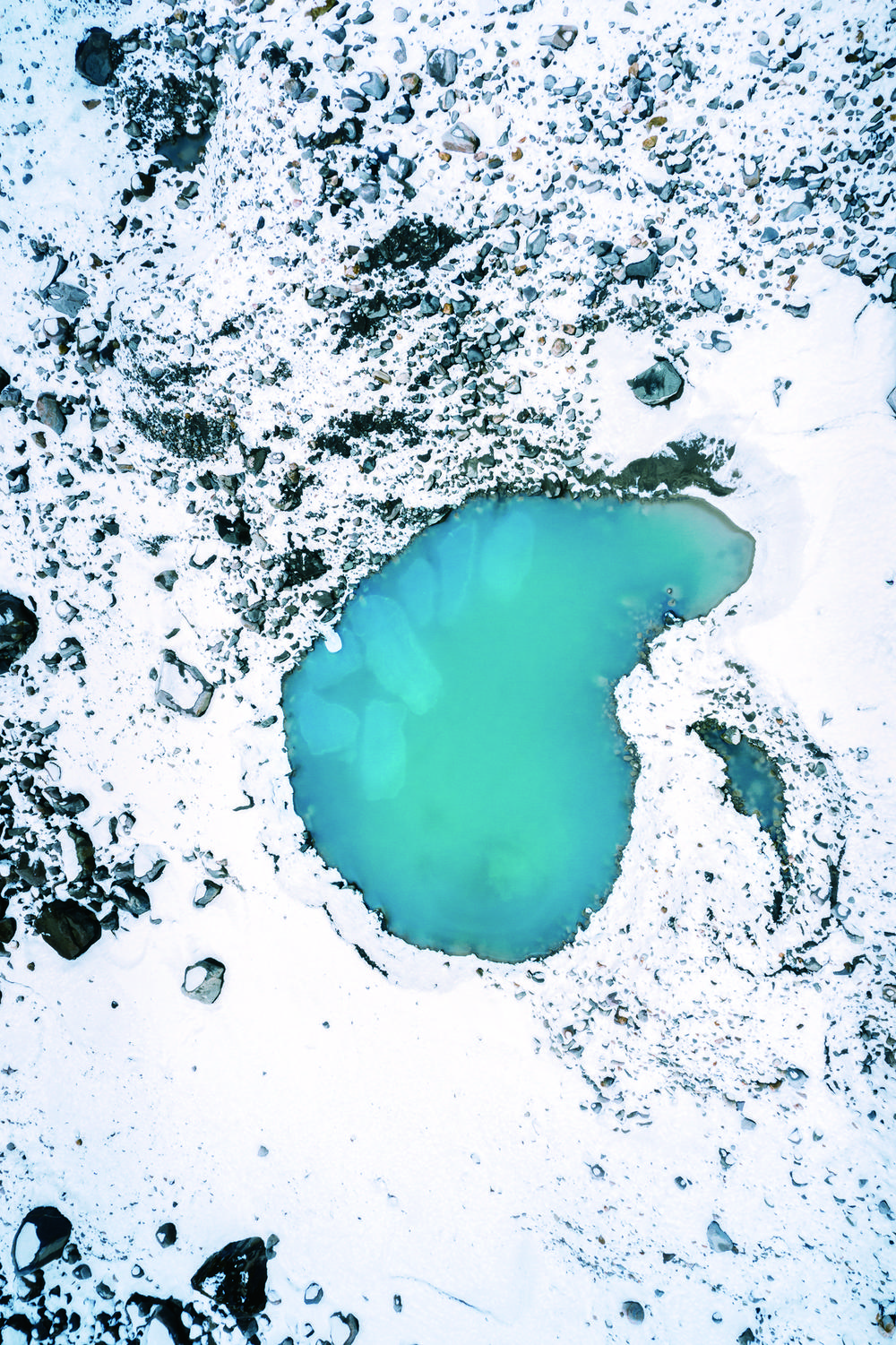 海螺溝冰川上的藍(lán)色冰磧湖。