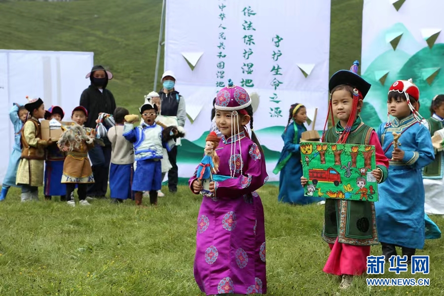 自2019年起,青海洮河源國家濕地公園每年夏季都會組織周邊幼兒園及中小學(xué)生開展科普教育活動,向?qū)W生們講授濕地基礎(chǔ)知識、了解植物和野生動物知識等,在體驗自然奧秘和美麗的同時,培養(yǎng)學(xué)生愛護(hù)環(huán)境、保護(hù)生態(tài)的意識。正值盛夏,這里天空湛藍(lán)、水草豐美??破招虇T多杰康卓在給來自河南縣賽龍鄉(xiāng)中心寄宿制完全小學(xué)五年級的學(xué)生們上生態(tài)課。 “濕地被譽為‘地球之腎’,是生物多樣性富集的生態(tài)系統(tǒng)和人類重要的生存環(huán)境之一,具有涵養(yǎng)水源、凈化水質(zhì)、維護(hù)生物多樣性等重要的生態(tài)功能?!倍嘟芸底拷o大家講授濕地環(huán)保知識,也與學(xué)生們一同分享大家創(chuàng)作的環(huán)保主題作品。