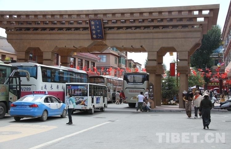 圖為游客涌入理塘縣勒通古鎮(zhèn)·千戶藏寨旅游景區(qū)
