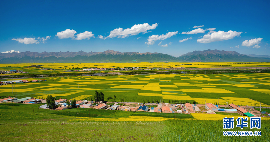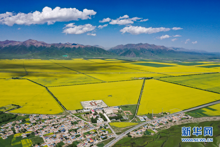圖為門源縣油菜花海。新華網(wǎng) 宋忠勇 攝